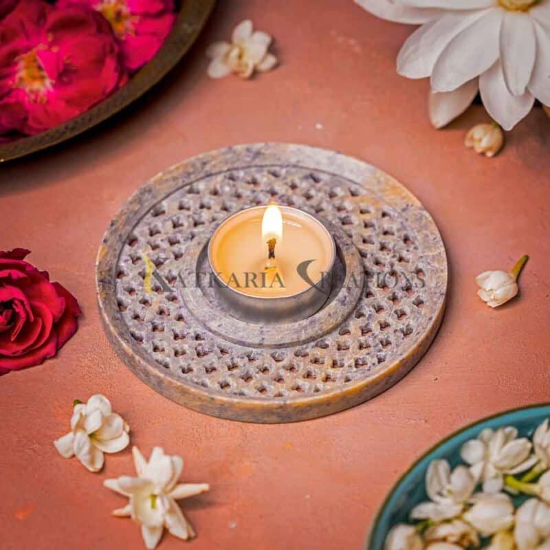 - QUALITY : This tea light candle holder is handmade from natural stone by the Indian Artisans with Jali work directly on the stone.