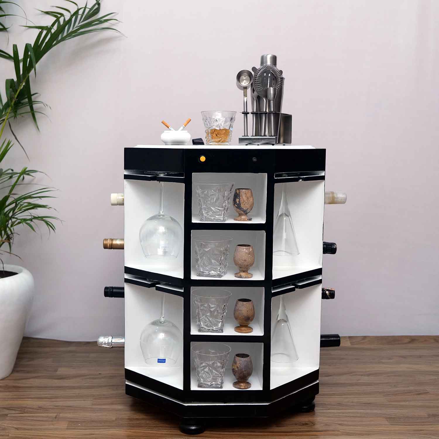 • Can hold up to 4 to 6 wine bottles and wine glasses.