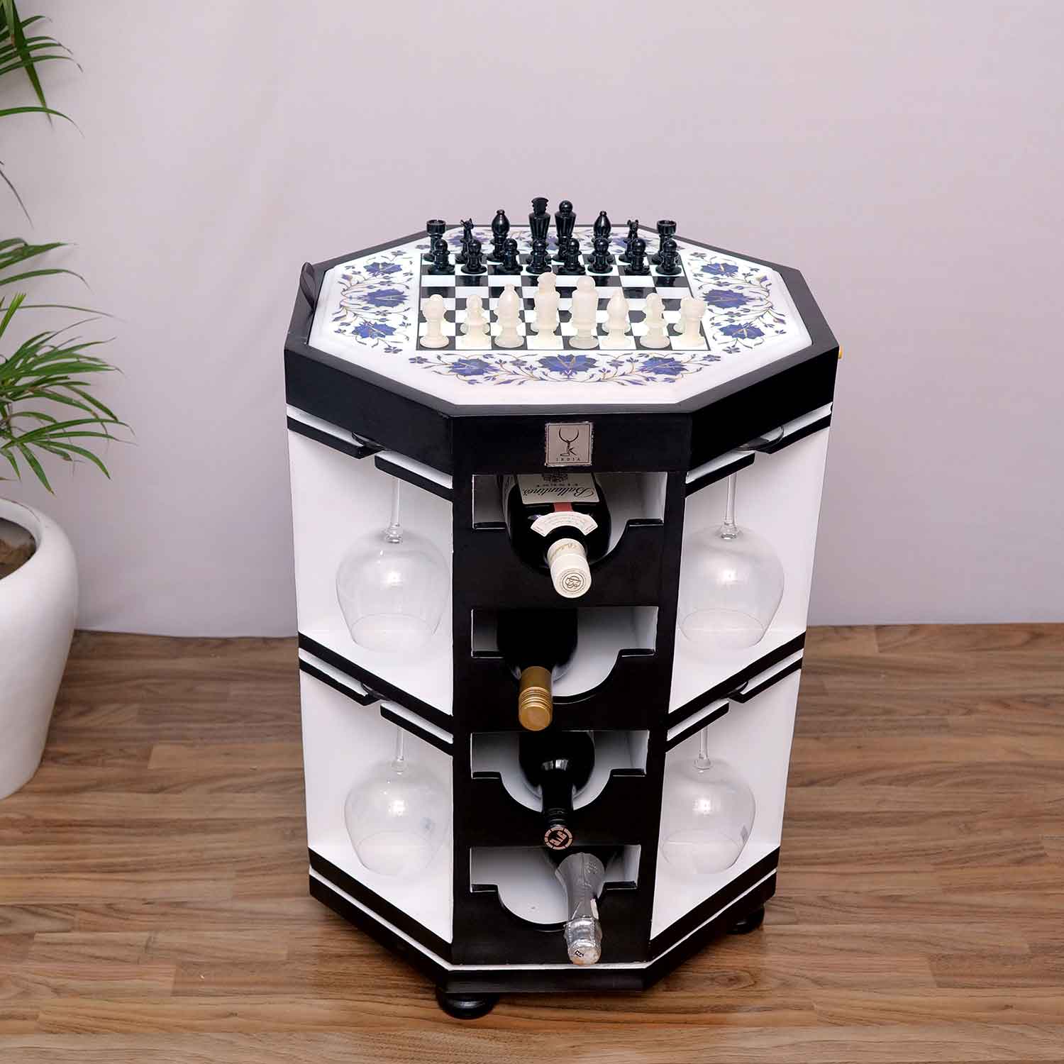 Home Bar Furniture Mini Bar Cabinet Luxury Rotating Bar Cabinet with Inlay Chess Board Marble Top for Small Homes & Apartments